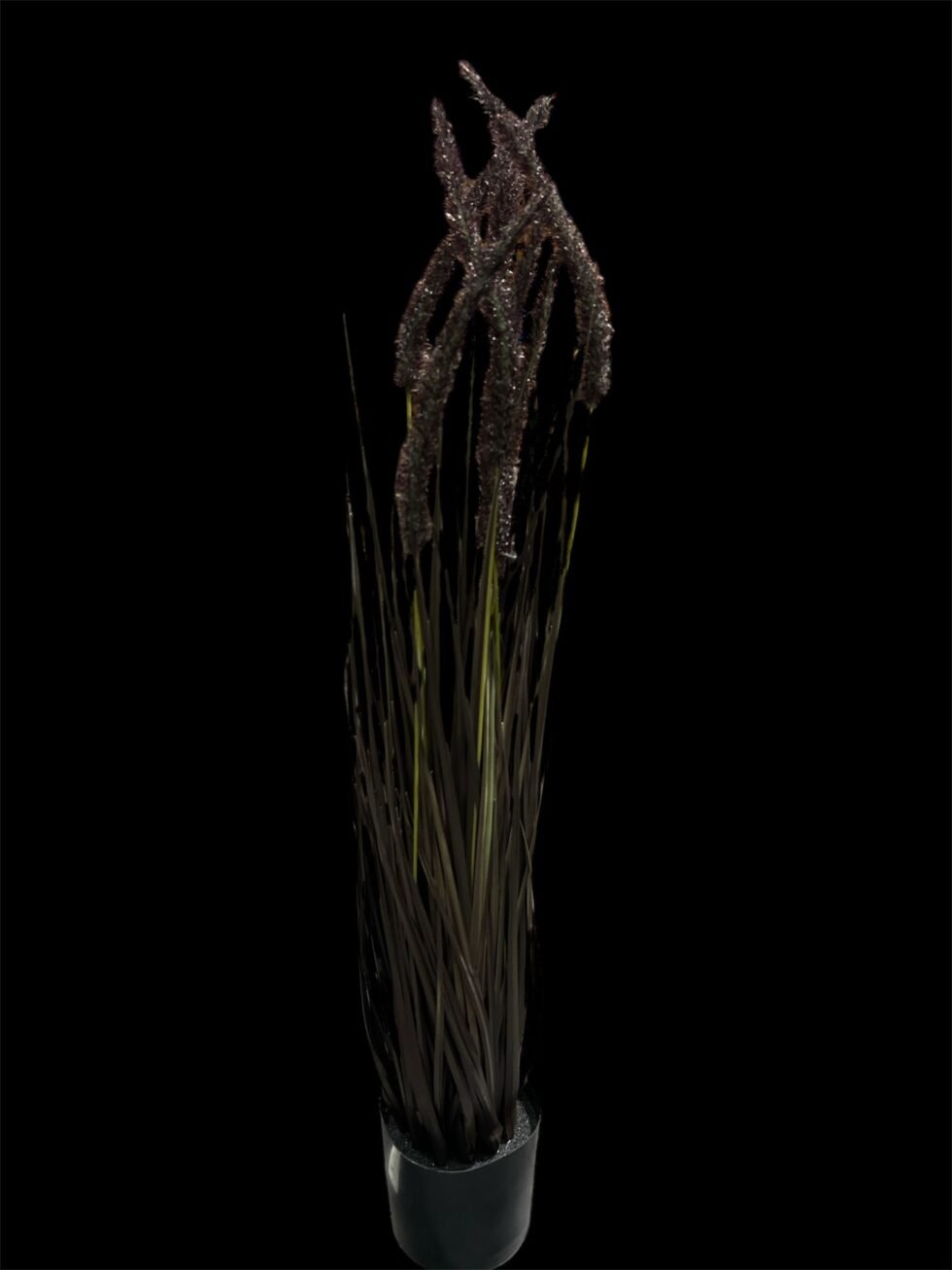 نبتة اصطناعية عصرية للزينة في أصيص، بأوراق طويلة تشبه العشب وسيقان أزهار طويلة ومزخرفة. يبلغ ارتفاعها 95 سم وعرضها 60 سم، وهي مثالية لإضفاء لمسة طبيعية على حديقتك الداخلية والخارجية.