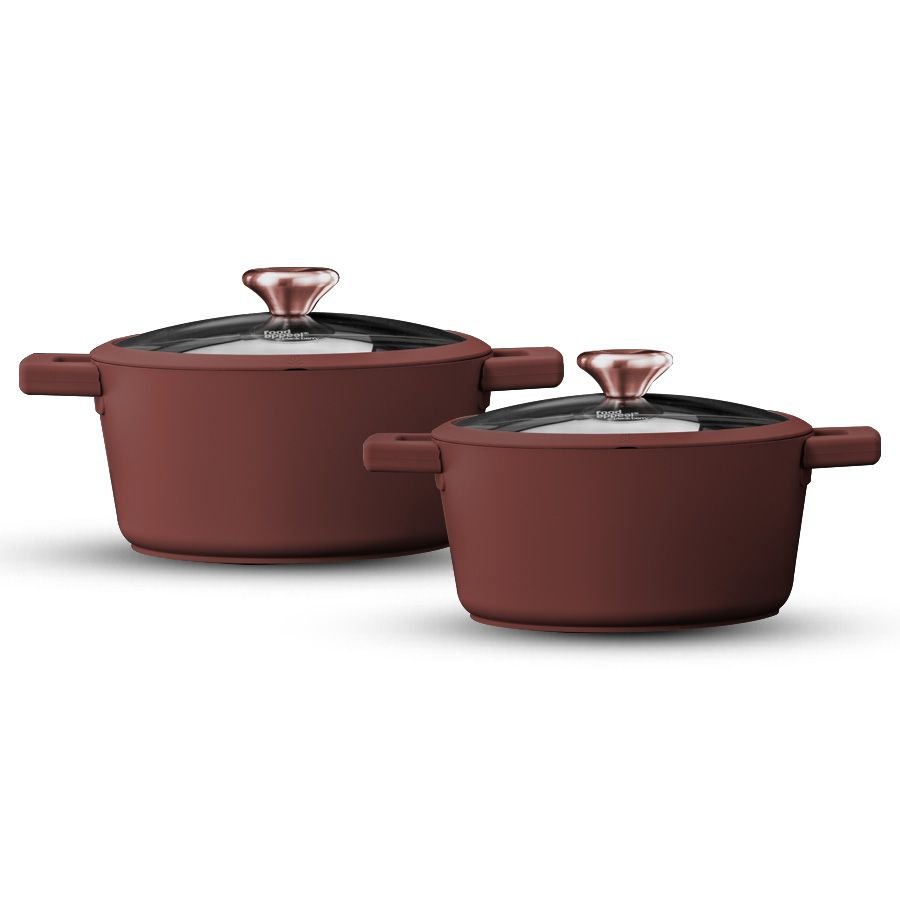 تُصنع طناجر هذه السلسلة بتقنية مبتكرة من الألمنيوم المصبوب، حيث يتم دمج جسم الطنجرة مع الطبقة الخارجية لتشكيل وحدة قوية ومتينة للغاية.