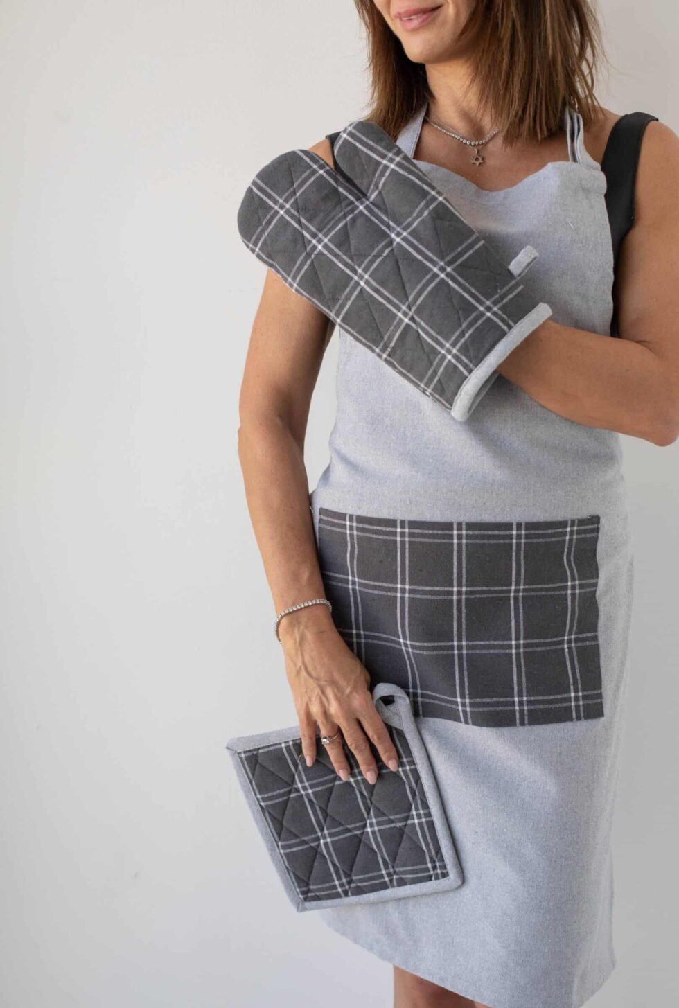 🤍סט שלושה חלקים: סינר, כפפה ומחזיק סיר