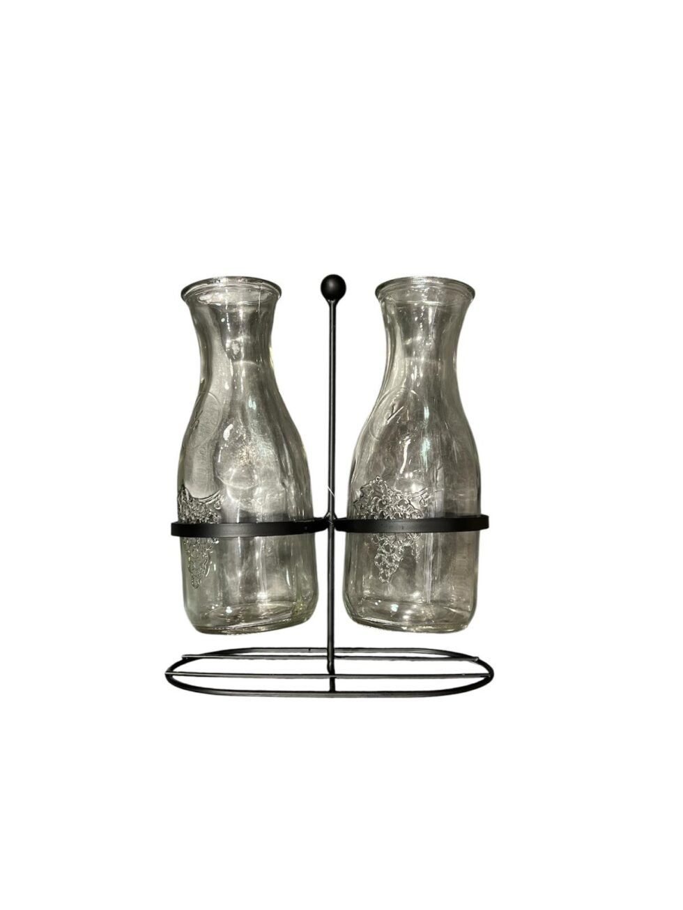 Set of 2 clear glass juice jars, perfect for serving and storing fresh juices, smoothies, or beverages in style.